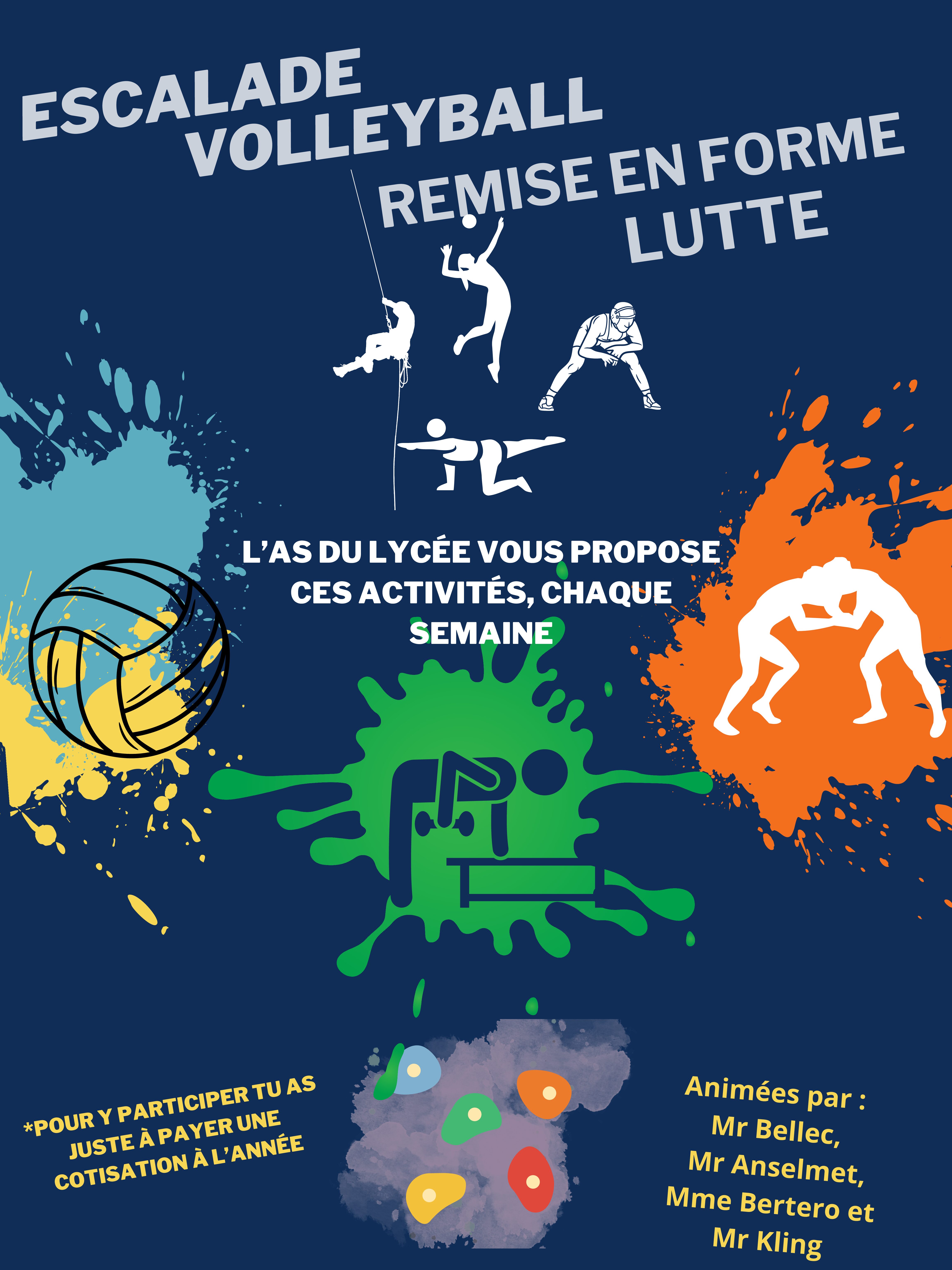 Continuer la lectureL’Association sportive du lycée propose aux élèves des activités sportives en plus des cours d’éducation sportive et physique : Escalade